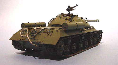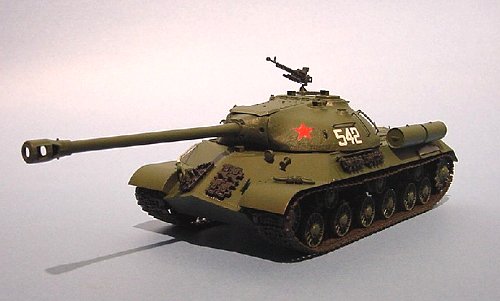 The JS-3 was Russia’s answer to Germany’s heavyweight, the Tiger, King Tiger and their Jagdpanzer companions. The third in the JS serie, it was different from the earlier two by having a cast turret shaped in a flat bowl (this turret shape is still found on modern Russian tanks). Armed with a powerful 122 mm L/43 main gun, it was a match for anything on the battlefield and with its thick armor (250 mm!), it could take a licking and still move on at 40 km/h under the power of its 520hp engine to search for another target.
