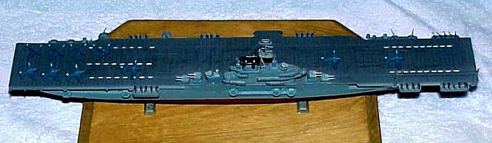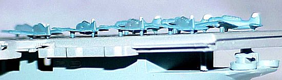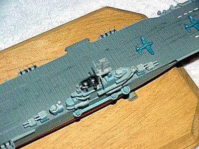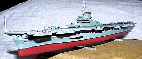 Although I flubbed a bit on the waterline black line (should have used a black decal) and the inaccurate placement of hull numbers, this as a labor of love all the way, and my first attempt at a ship since I was a boy. I can heartily recommend this kit to all modelers looking for an inexpensive way to depict Essex-class carriers. It makes me want to try my hand at other capital ships, but I think I’ll try out Tamiya’s and Hasegawa’s lines for a bit more detail, plus I’ll make sure my historical background is checked before construction. I’d like to thank Len Roberto and T. Garth Connelly for their advice and support in this project.