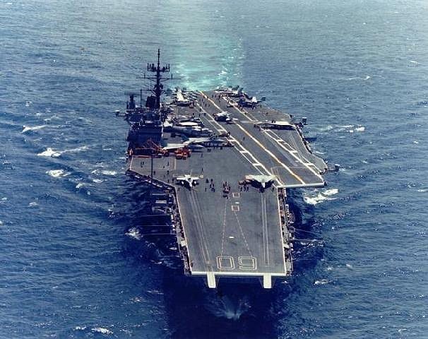 The U.S. Saratoga (CVA-60) was launched in April of 1956. She displaced more than 60,000 tons and was 1039 feet long. The carrier air wing was composed of up to 90 aircraft. Fifteen thousand combat missions were flown off her deck during the Vietnam War. In 1985 she participated in strikes against Libya and in 1990 served in support of Operation Desert Storm. She was decommissioned in August 20, 1994 and is currently sitting in a Rhode Island cove with the Forrestal and battle ship USS Iowa while a Foundation (http:www.saratigamuseum.org) tries to make a floating museum out of the ship at Quonset Point Naval Air Station.