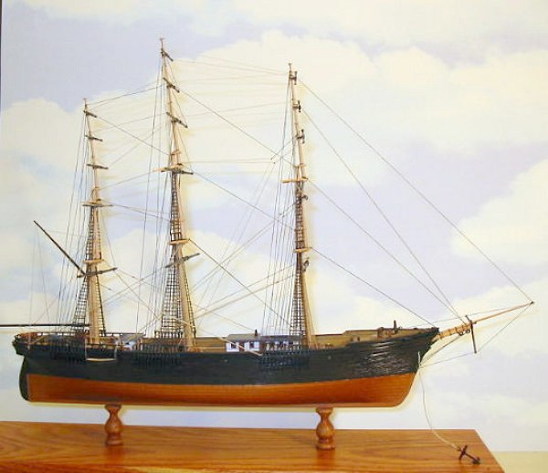 Sword Fish was considered an “Extreme Clipper” in hull shape. Her hull was black (all clippers were), and the bulwarks were a buff color. Her waterways (where the deck meets the bulwarks on the inside of the hull) were blue. The deckhouse was white with wood trim, and the roof was probably the same blue as the waterways. Her masts were probably a light wood color, and her yards were black. She had a raised quarterdeck and focs’le, and a large deckhouse on the main deck. There is no specific deck layout known.