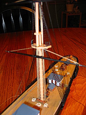 The bowsprit is brittle—I left mine off as long as possible, so I wouldn’t break it. Once I installed it, I immediately rigged it—it adds a lot of support to the piece.-