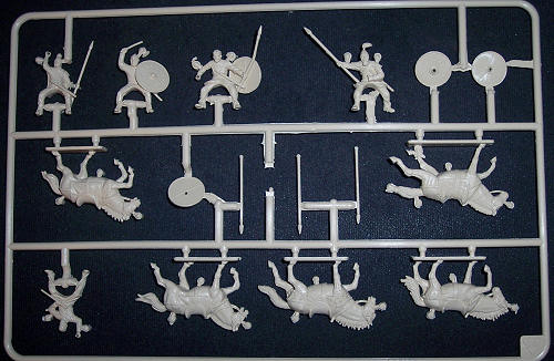 Each parts tree has 5 horses, 5 riders, 3 shields and 3 spears. Two of