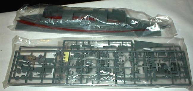 This kit was picked up at an antique tag sale and shows its age. It appears to be an early boxing. Despite its age, the kit shows very nice detail on the flight deck, island, and hull. The kit is molded in a dark grey plastic and also includes a couple sprues of Japanese naval aircraft including Zeroes and what appear to be Kates and Vals. This is a nice size kit and will allow the builder sufficient room for adding brass details for enhancements Gold Medal Models set # 700-14 $12.00 is a good choice). This kit is still in production (it was for sale on a few of the bigger online retailers.)