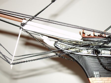 These are tiny hoops where lines are tied off and there are scores of them on the deck, bulwarks and hull. Everything I read said the plastic ones supplied in the kit are not strong enough to take the strain of the rigging so replace them with metal ones. I bought a bag of them from Micromark for $5.00. This is a must. When you get to rigging, the pressure of the line as well as the act of threading and tying the knot means the metal replacements are well worth it.