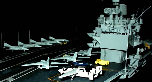 Two S-3H Sea King choppers next with the folded rotors. I tried using the brass blades but I made a shambles of these delicate pieces as well as managing to invent a few new vulgarities. Again, the GMM decal sets add a lot to these choppers.