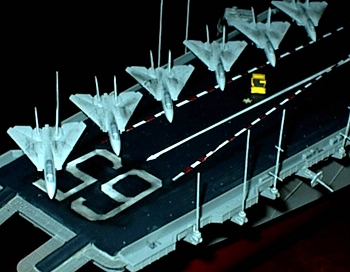 I then used some black and grey pastel chalk to lightly weather up the planes especially the Tomcats and Prowlers. I couldn’t have them look too clean…Then I closed up the aircraft shop for now. At some later date, I’ll go back and build a few more aircraft but for now this complement will do!