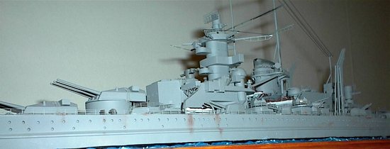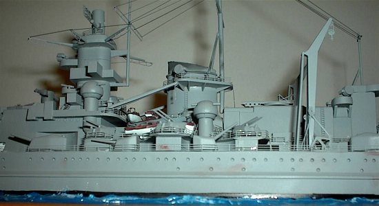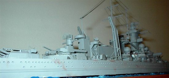 BRIDGE AND SUPERSTRUCTURE: footropes added to all yards, plastic ladders were discarded and replaced with brass inclined and vertical ladders, various watertight doors added,