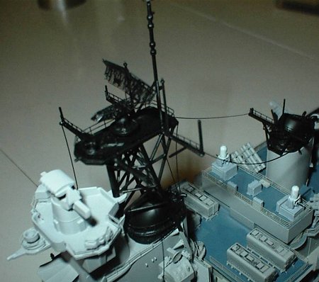 MASTS- There is a lot of brass to be added on these assemblies and they really add significantly to the look of the kit. The radar is so finely detailed and the railings around the platforms fit perfectly- it looks infinitely better than the plastic parts.