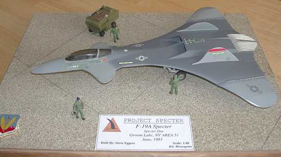 Monogram’s F-19 kit came out in the late 1980’s and was supposed to be what the Stealth fighter was supposed to look like. Well, needless to say that when the U.S. Air Force unveiled the F-117A, it was realized quickly that the Testors and the Monogram F-19 designations and shapes were completely wrong.