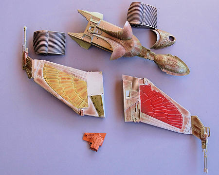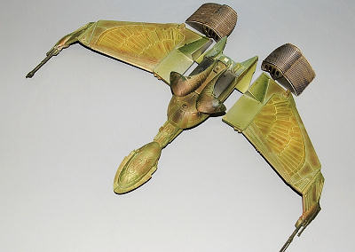 You do have to decide which way you want the wings to appear, in cruise mode or attack mode, before you assemble the baffles. I like the cruise mode better, but they wanted the attack mode, with the wings drooping down like a mantling hawk. I have to admit, the designers of the ship did a good job, it does look aggressive.