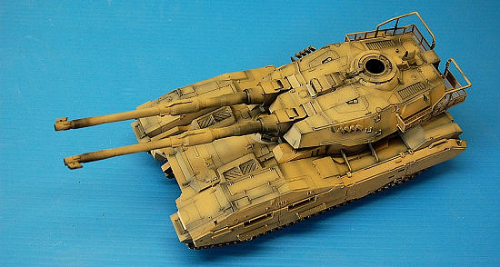 The Type 61 twin barreled (150mm’s) tank was the earth standard heavy tank , used for wreaking destruction on all sorts of foes. Separate elevation and ranging for each barrel meant that they were basically “land battleships”. Of course, in the Gundam universe, missiles are almost completely useless due to jamming systems, so combatants have to go head to toe with each other in combat, and the 61 was the mainstay for many a year…until the Mobile Suits arrived. Game over.