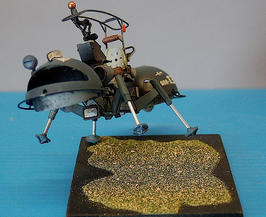 The Mobile Scout vehicle has two ducted rotors that are steerable, and four torsion legs to take up the slack as it bounces its way across the terrain, keeping an eye on those untrustworthy enemy Earth forces. It also has a machine gun and two huge mirrors. Why? Because they look cool, and the Zeons like to look cool, no matter how outlandish they may appear.