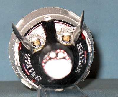 I added some details to the doors using 10 and 40 thou plastic card and rummaged through my spares box to find parts that looked like the Gemini hatch actuators (the closest were some Tamiya P-47 Flap actuators.) The interiors of the hatches were painted XF-19 and once the paint was dry, clear acetate cut to shape and glued in with white glue. The hatch assemblies were then glued to the Gemini and I was done.