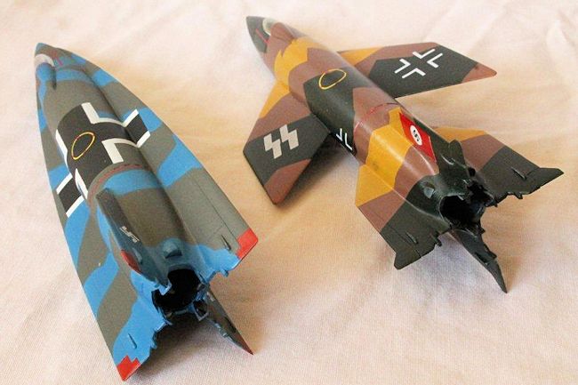 As I expected, the SS marking on the A-4b received a lot of criticism – on a weapon that probably never existed. DILLIGAFF!! I build models to please me, and I now have something else that is unusual in my new model display cases. Further to this theme, I still have to do a standard V-2 on its (resin) transport trailer, with its attendant (resin) launch vehicle. And I have to complete the two launch stands – after I find them!! Wish me luck………..