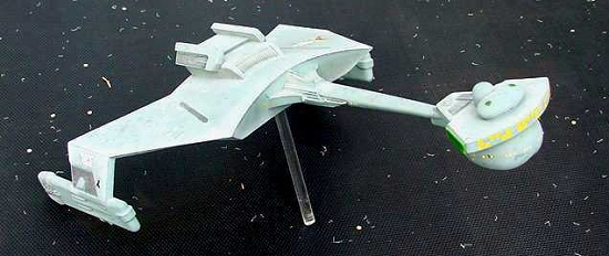 If I had to build another one (and I do), I would place some vertical reinforcing inside the hull, ‘cos there ‘aint none. I would definitely rethink the windows on the bridge. And for fun, I will be fitting my next Klingon Battlecruiser with an additional two engines, possibly upside down above the existing two, or more probably underneath, at the corners of the hull.
