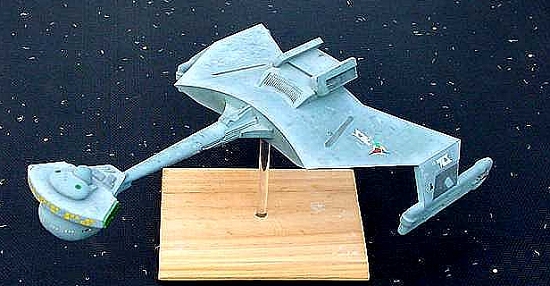 In the original series (TOS) of Star Trek, there are two main forces confronting the Federation and Starfleet (their armed exploration ships or are they exploring warships?). They are the Romulans and the Klingons. The Klingons are a warrior race who possess a fleet of large Battlecruisers. Like the ships of Starfleet, the Klingon Battlecruiser (KBC) is capable of warp (faster-than-light) speed and travel at slower-than-light speeds on Impulse engines. They are armed with photon-torpedoes and equipped with electronic(?) defensive shields.