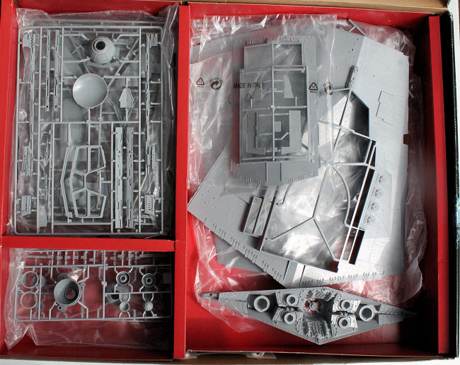 With careful construction, even by a novice modeller will be able to build a very impressive out-of-box model from this kit. Its size and level of detail puts all previous Star Destroyer kits in the shade.