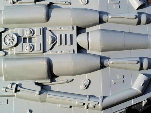 If you are a rivet counter ( do they use rivets in the Colonies ?) These are not exact copies of the Battlestar from the TV show, they had to simplify for ease of production, but it still a nice kit, just be warned if you want one, they are getting rarer and because of that, more expensive. I have seen them going for anywhere from $50-200 on Ebay. You might find a better deal at kit swap meets, that is where I found mine for $20 and $30 over the last 2 yrs.