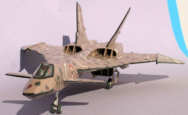 fins, apparently inspired by the XB-70. The nose section is faceted like a