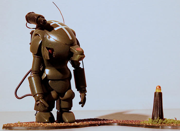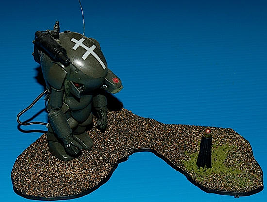 Now comes the IR sensor doo-hickey. Gotta admit, it makes the whole thing look much better than the rest of the walking eggs. More hoses and stuff need to be attached, as well as a stretched sprue antenna.