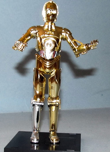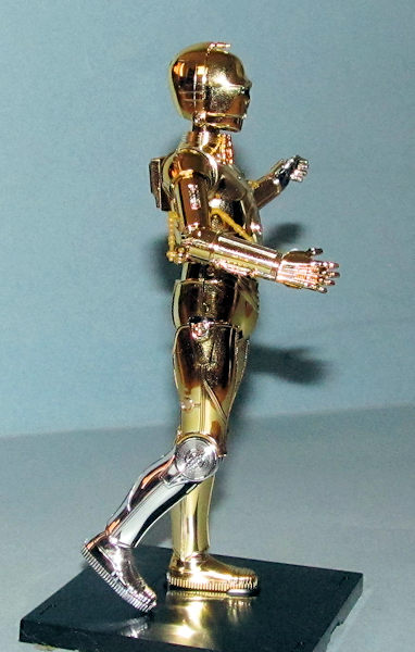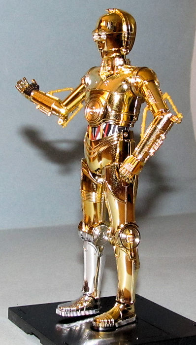 C3P0 comes with the option for moveable or fixed arms. Being the odd sort who makes his model robots dance to Styx's Mr Roboto, I opted for the moveable arms even though the fixed arms provides plated actuators and is more accurate finish wise.