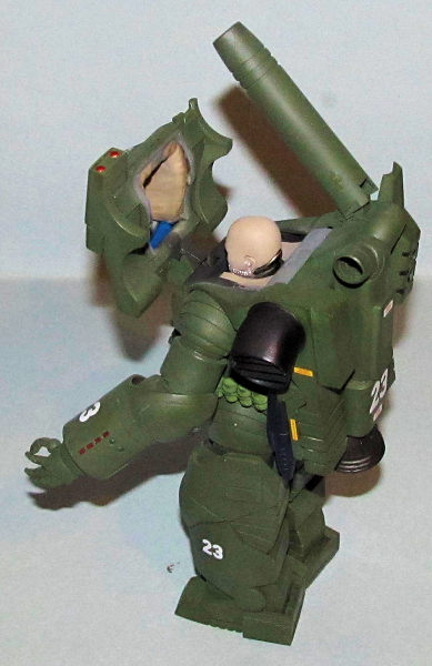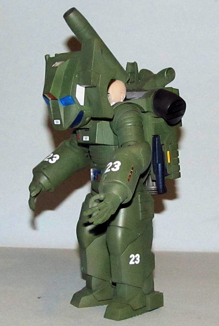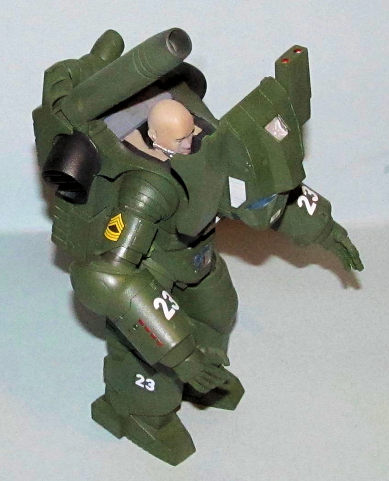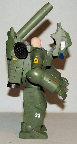 Wave’s version of the Marauder Suit has a “Japanese” look to it (not surprising considering that it is a Japanese model maker) for those who have seen or are familiar with Japanese Samurai Armor and it is based on a Japanese Anime version of Starship Troopers. It contains all the main weapons as described by Heinlein from the hand held flamers to the Y-Rack grenade launcher to the shoulder mounted rocket launcher.