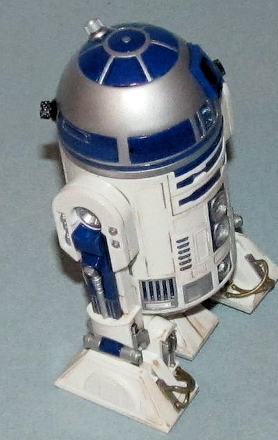 I used a thin brown watercolor to give R2 a slightly used look as I did not go all Tatooine on R2D2 or the Star Wars equivalent of South Pacific weathering. The excess was removed with damp Q-Tips and then sealed with my last remaining bit of Xtracrylix Semi-Gloss and Flat coats.