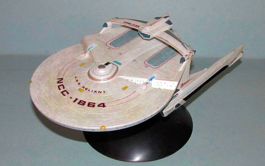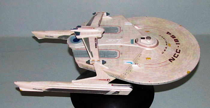 Lastly I glued the warp engines on using some Tamiya extra thin glue and a couple of dabs of CA glue to hold them into place. Once they were secure enough, I added the Reliant to the stand and I was finished.