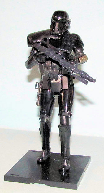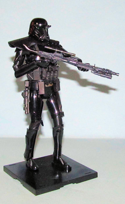 The Death Trooper is another very easy to assemble kit that looks good regardless of how much effort you want to put into it. The detail that Bandai puts into each of their figure kits is state of the art and shows you how much effort/thought they put into designing them. To show how much detail Bandai put into the Death Trooper, it is actually slightly taller than the various Stormtroopers in line with the description of the Death Trooper being a taller deadlier Imperial Stormtrooper. I can recommend these kits for Star Wars fans and modelers of all skill levels.