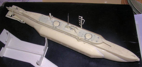 deck part. Having fixed the rudder and stabilisers in place the propeller is