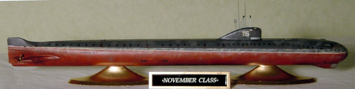 The Project 627/627A (NATO designation "November") submarines were the first Soviet nuclear powered attack submarines (SSN) to enter service. Between 1955 and 1963 a total of 13 units was built at the 402 Sevmash shipyard at Severodvinsk.