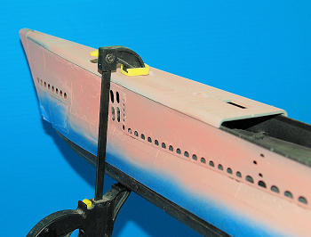 primer gray. Masking off the top section, I sprayed the hull again with Matte
