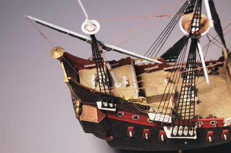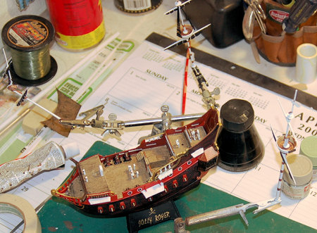 The connection points for the smaller bits, like the fife rails and such, are so weak that you will want to not attach them until you have the hull assembled, or the carpet monster will snag them up.