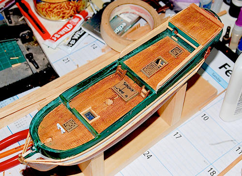 for the cannonades. I decided to drill out the holes for the mast at this time.