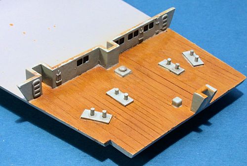 the quarterdeck. The fours large bitts were scratchbuilt, and the deck received