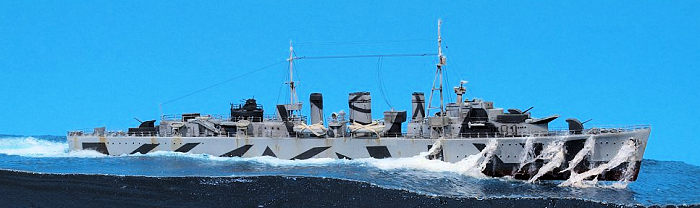 Apart from this important and dangerous service, ships of the class served both in the Indian Ocean and the Pacific in various roles, showing the adaptability and usefulness of the design. This dangerous frontline service led to the loss of three out of six ships of the class. The survivors served in the postwar navy, with Manxman being scrapped only in 1972. That same year, Airfix produced their 1:600 kit of Manxman in injected styrene, which is one of the best kits in this series. There is also a 1:700 Matchbox kit of the last two units Ariadne and Apollo, which has also been reboxed by Revell. White Ensign Models has produced a fine 1:350 resin kit of the lead ship of the class, Abdiel. Being a card-carrying Airfix fan with little remaining diplay space, I built the Airfix kit from my stash, deciding on HMS Abdiel in the lively splinter camo she sported in the Mediterranean in 1941.