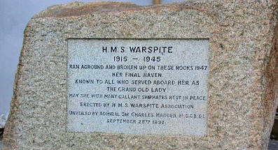 in 2005, I happened upon a memorial to HMS Warspite erected near the site of her