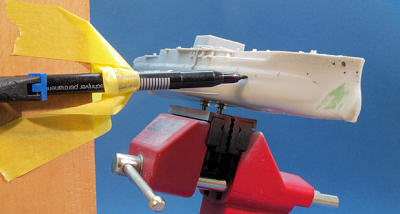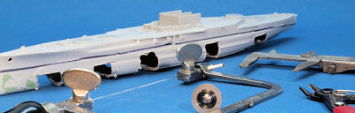 the underside of the main deck to mount the model on the vise, and openings were