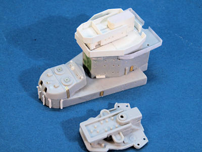 filled with styrene stock and sanded. Oversize splinter shields and molded on