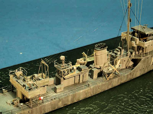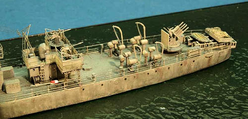 most modification; the deck was replaced by sheet styrene, and the two Oerlikons