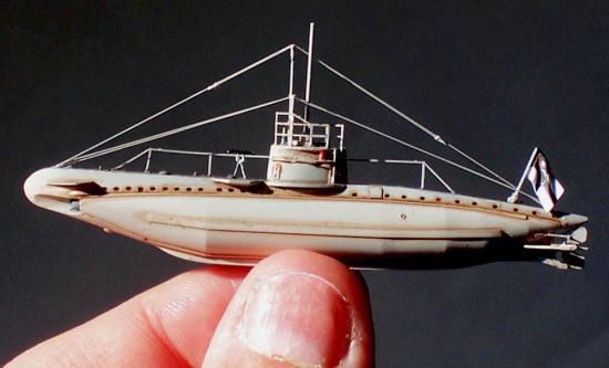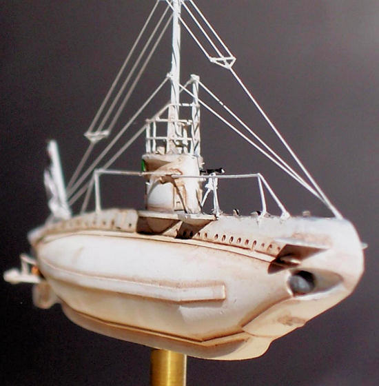 The paint scheme was an overall coat of Silver gray. After it had dried I masked off the upper horizontal surfaces and painted them a 50/50 mix of silver-gray and anthracite gray. I touched every thing up with a paintbrush and added the rigging. Lastly I weathered like I’ve already said and VIOLA, I’m done.