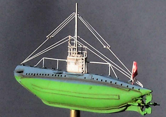 and antenna mast. Then I drilled two little holes for the rigging, then painted.