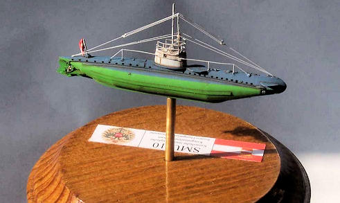 If you read my first build of the German UB-6 you will know about all there is to know concerning this kit. Nothing has changed here except this copy had two little air bubbles on the bottom of the hull. All I did here was add a little putty to fill the holes and sand.
