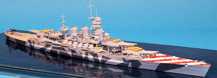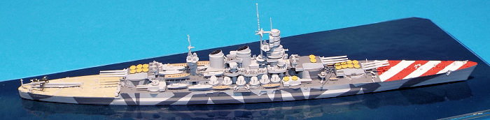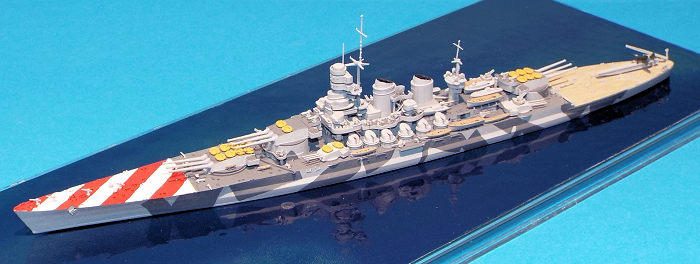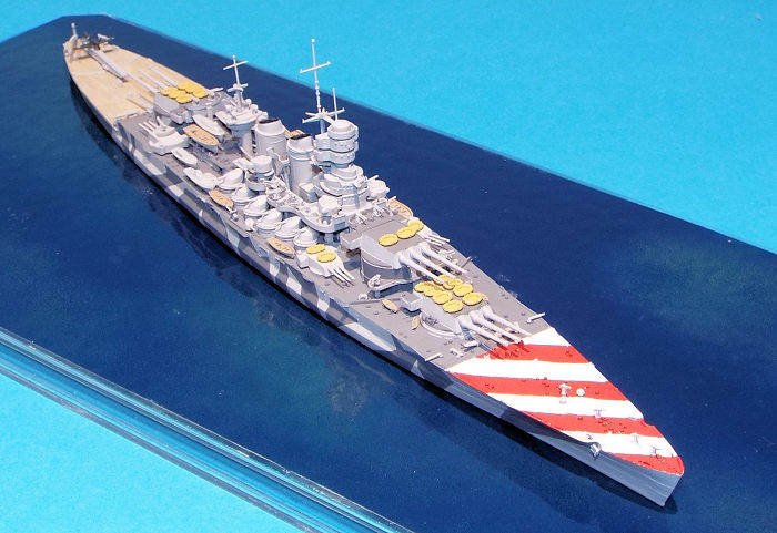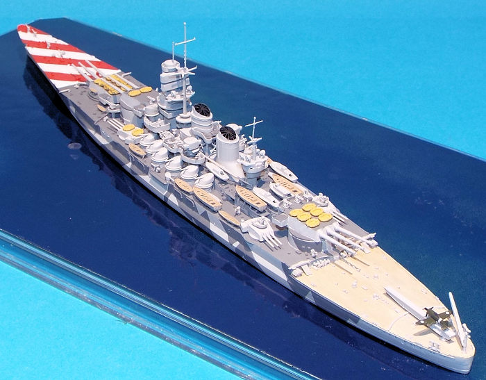 I have always thought the Italian Vittorio Venento class were exceptionally handsome ships. They have a certain elegance about them. The Trumpeter kit shows these lines well. This kit builds up well, but at 1/700 scale you need to be ready for some tiny, tiny parts. Also, sitting in with the “fleet” of my other 1/700 ships, the recognition stripes really stand out and gather a lot of comments. Recommended to anyone with an interest in these beautiful Italian warships.