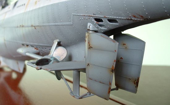 The model was coated with Future and the only decal used was placed (the stick figure on U-556) after that, the model was weathered using oil paints.