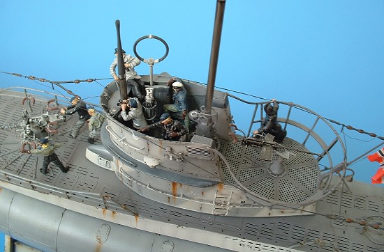 overall color and the tower was camouflaged with gray stripes. The U-Boat