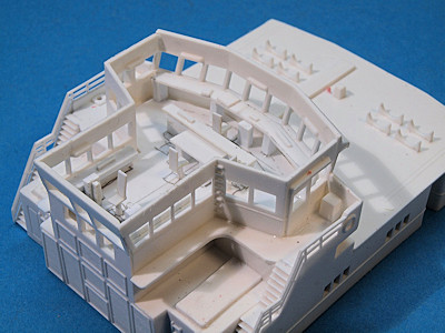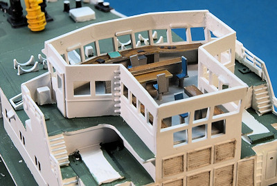 PE handwheel stock. The liferaft racks in front of the bridge were remade from