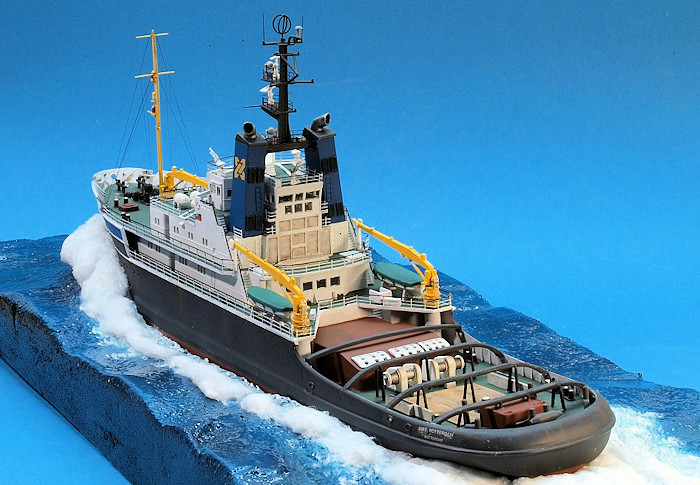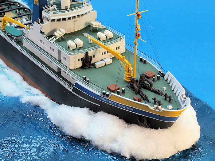 It was a matter of trying, pausing, revisiting, redoing, correcting, until I finally was satisfied with the result. I feel I learned something during this build and am hopeful I can improve my further seascapes with this technique, especially the bow wave and the wake.
