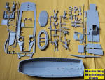 The kit comes in a rather flimsy lidded box. The parts are in grey plastic. No thread is included. There are decals. No flag is included, maybe small craft do not fly a flag.