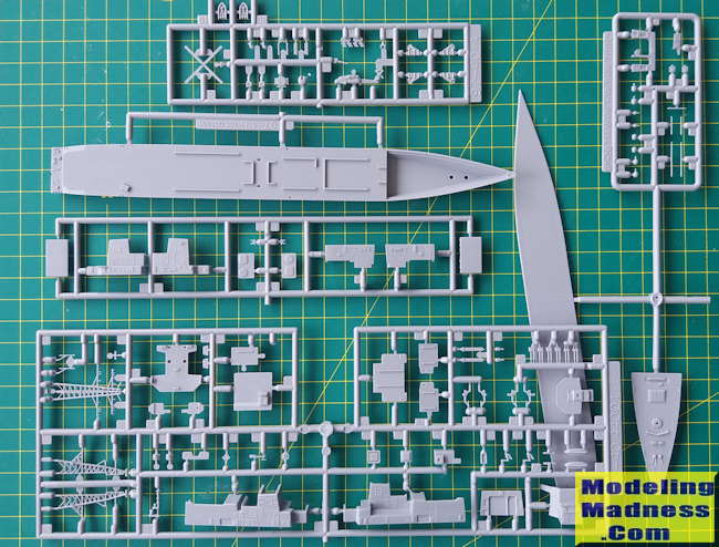 It's a waterline model, comes with a nicely formed Seahawk helicopter and a pair